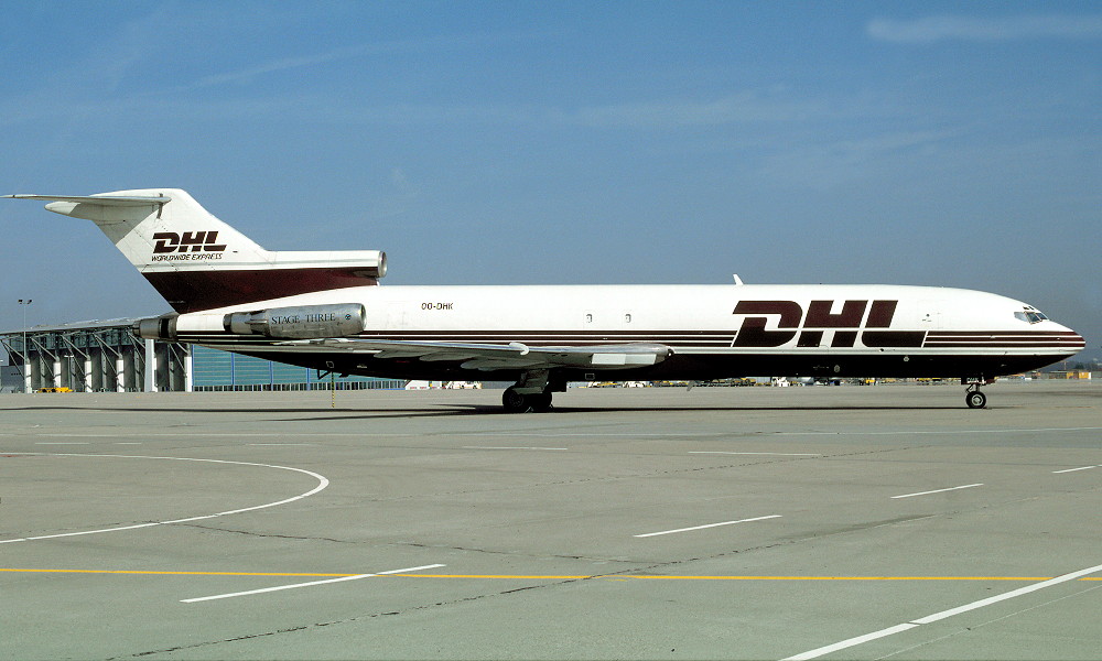 OO-DHK. DHL Worldwide Express - in the standard livery at Stuttgart Airport, March 2000. (R. N. Smith Collection Copyright Image 4610-207.) |
