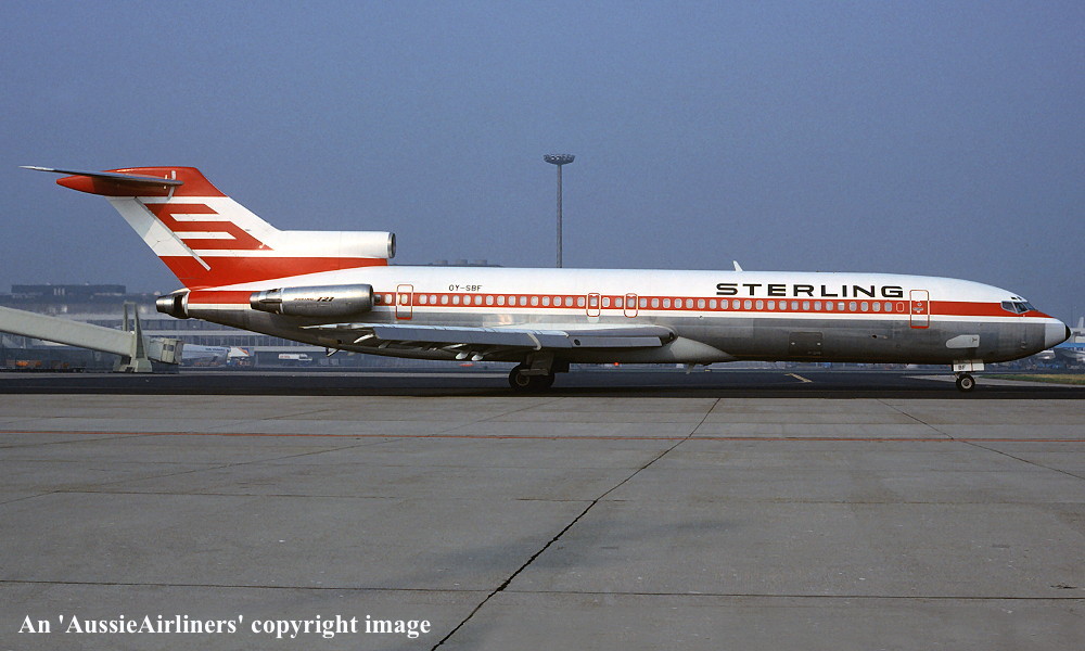 OY-SBF. Sterling - in the standard livery at Amsterdam Schiphol Airport, October 1981. (R. N. Smith Collection Copyright Image 4610-259.) |