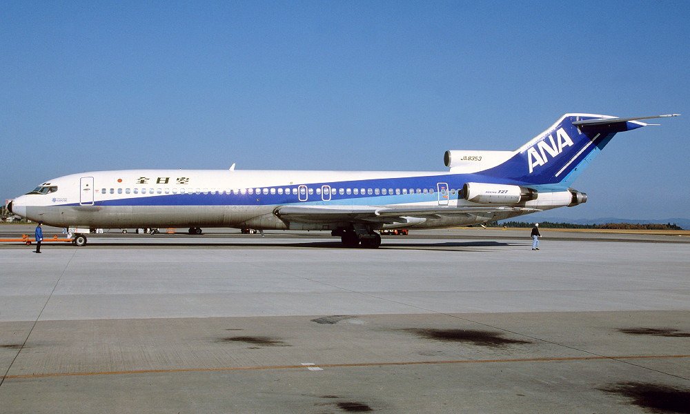 JA-8353. All Nippon Airways - in the standard livery at Nagoya Airport, December 1989. (R. N. Smith Collection Copyright Image 4610-257.) |