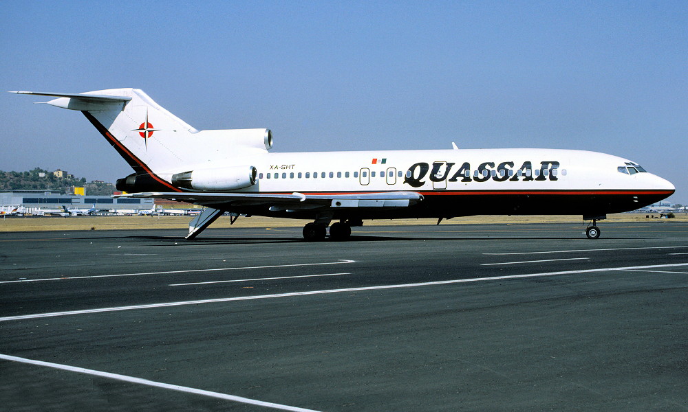 XA-SHT. Quassar - 'El Crucero del Aire' in the standard livery at Mexico City Airport, January 1994. (R. N. Smith Collection Copyright Image 4610-218.)