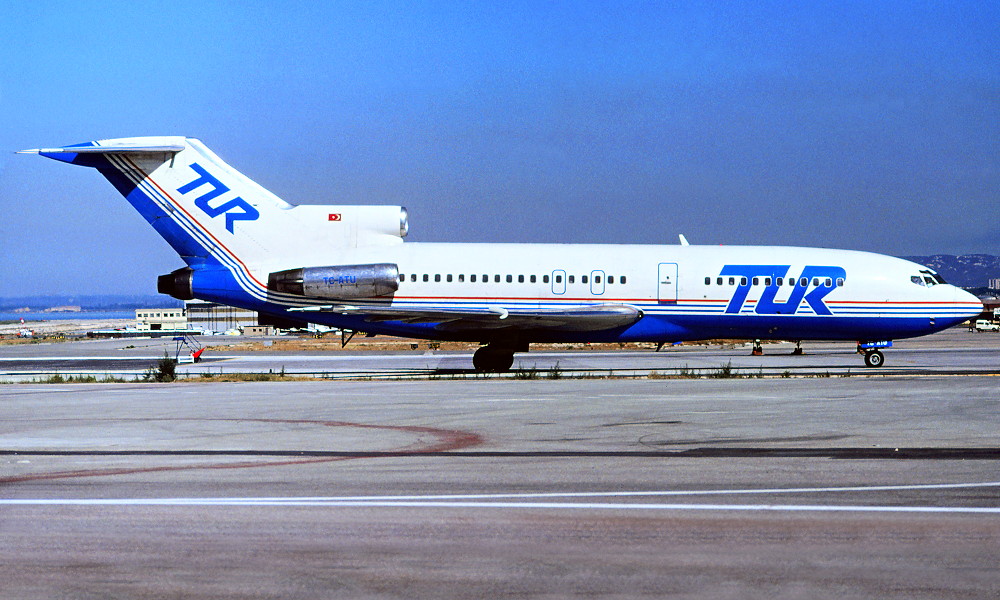 TC-ATU. TUR - in the standard livery at an unknown airport, August 1990. (R. N. Smith Collection Copyright Image 4610-613.)