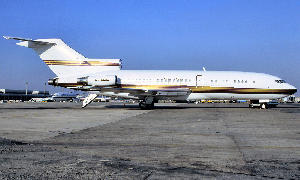 5X-AMM. Triangle Airlines - in the standard livery at an unknown airport, date unknown. (R. N. Smith Collection Copyright Image 4610-196.)