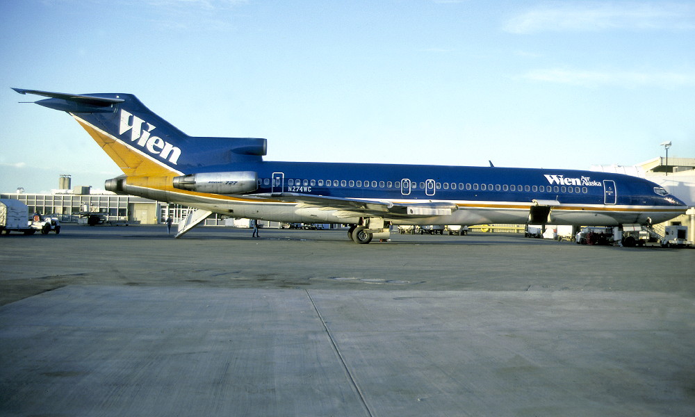 N274WC. Wien Air Alaska - in the standard livery at Seattle Airport, February 1984. (S. A. Hills Copyright Image 4610-932.)