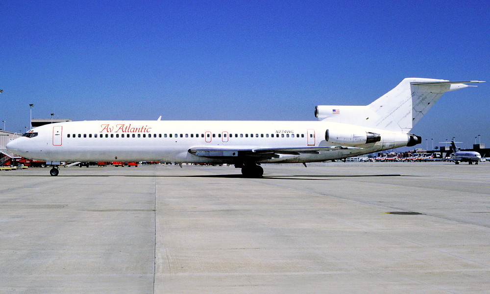 N274WC. Av Atlantic - in the all-white livery at Miami Airport, May 1994. (R. N. Smith Collection Copyright Image 4610-154.) |