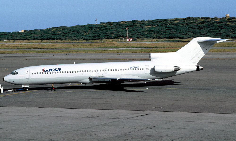 N274WC. Lacsa - in the all-white livery at an unknown airport, December 1991. (R. N. Smith Collection Copyright Image 4610-201.)