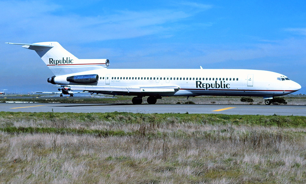 N274WC. Republic - in the revised livery at San Francisco Airport, February 1985. (R. N. Smith Collection Copyright Image 4610-397.)