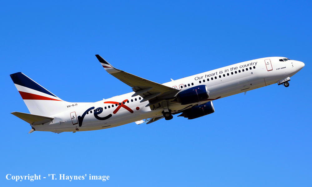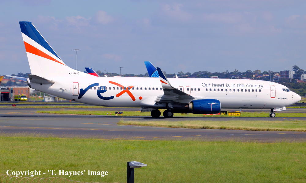 VH-8JS. REX Regional Express - in the standard livery at Sydney Kingsford Smith Airport, March 28, 2024. (T. Haynes Copyright Image 4623-645.) |