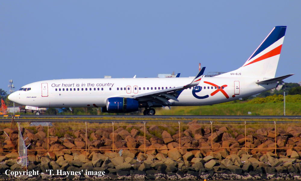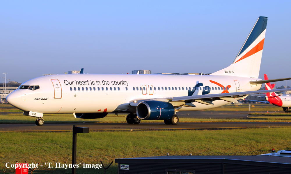 VH-8JS. Boeing 737-8SA. c/n 44218-4808. Was also registered as: 9V-MGB. |