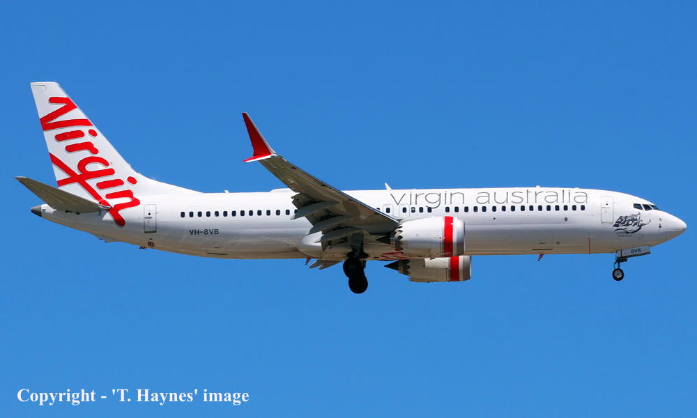 This aircraft was ordered new by Virgin Australia Pty Ltd - 2023 It was the 13th Boeing 737-8 MAX ordered by Virgin Australia The aircraft was built by the Boeing Company, Renton, Washington, U.S.A. Powered by CFM International CFMI LEAP-1B25 engines It was observed at Seattle (Renton) in 'primer' only - July 18, 2025 Entered onto the Australian Aircraft Register as VH-8VB - July 21, 2025. Registered to Virgin Australia Airlines Pty Ltd, Spring Hill, Queensland It was observed at Seattle (Renton) in the standard 'Virgin Australia' livery - August 10, 2025 First flown (T1) Seattle (Renton - 21:29 UTC) - Seattle (Boeing Field - 00:19 UTC) as BOE022 - August 14, 2025 Test flown (T2) Seattle (Boeing Field - 21:46 UTC) - Seattle (Boeing Field - 22:17 UTC) as BOE022 - August 24, 2025 Test flown (T3) Seattle (Boeing Field - 23:01 UTC) - Seattle (Boeing Field - 23:44 UTC) as BOE022 - August 28, 2025 Test flown (C1) Seattle (Boeing Field - 16:16 UTC) - Seattle (Boeing Field - 19:02 UTC) as BOE022 - August 30, 2025 Accepted by Virgin Australia at Seattle (Boeing Field) - September 04, 2025 Ferried Seattle (Boeing Field) - Orlando (Florida) as VA9946 - September 04, 2025 The aircraft's 'wi-fi' system was installed at Orlando International, Florida It departed Orlando ( 08:42 local) on the delivery flight to Australia as VA9947 - September 10, 2025 It arrived at Brisbane (13:12 AEST) on completion of the delivery flight from the United States - September 12, 2025 Delivery route: Seattle (Boeing Field) - Orlando (Florida) - Ontario (California) - Kona (Hawaii) - Brisbane The aircraft was named 'Tamar River' Registered to CIT Aerospace LLC, New York, U.S.A. - September 12, 2025 Leased to Virgin Australia Airlines Pty Ltd, Spring Hill, Queensland as the registered operator Operated its first revenue service Brisbane - Sydney (Kingsford Smith) as VA924 - September 17, 2025 Current with Virgin Australia Airlines |