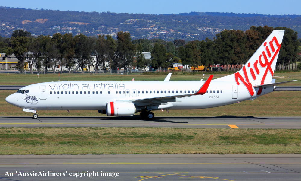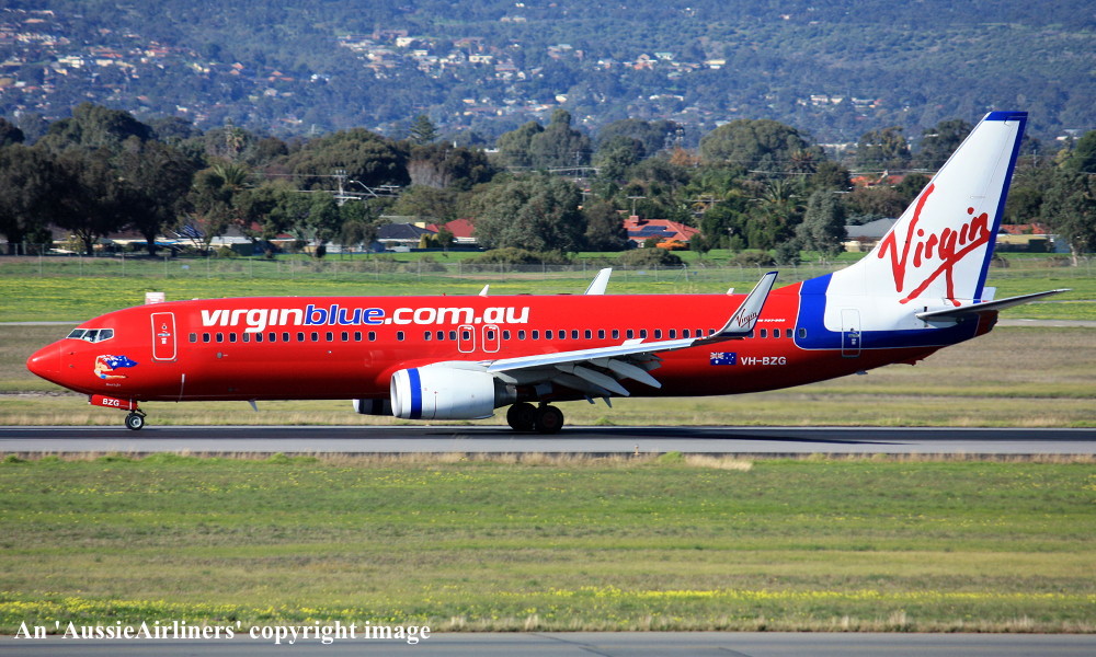 VH-BZG. Virgin Blue - 'Brett's Jet' in the standard livery at Adelaide West Beach Airport, June 25, 2013. (T. Haynes Copyright Image 4620-774.) |