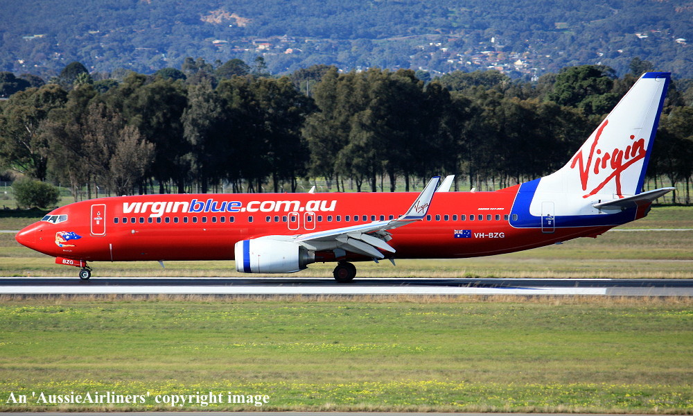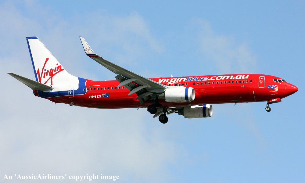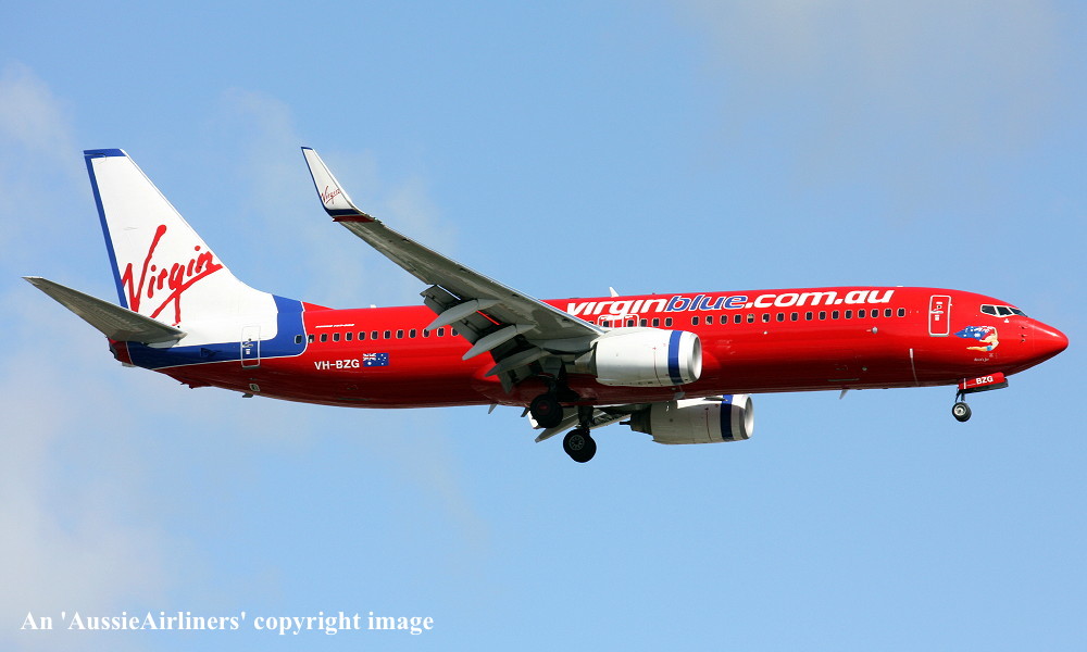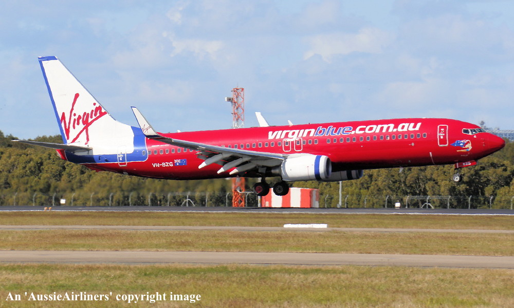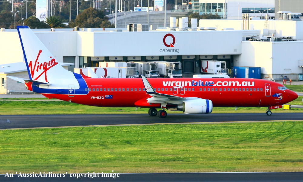 VH-BZG. Virgin Blue - 'Brett's Jet' in the standard livery at Brisbane Airport, July 27, 2013. (R. N. Smith Collection Copyright Image 4620-775.) |