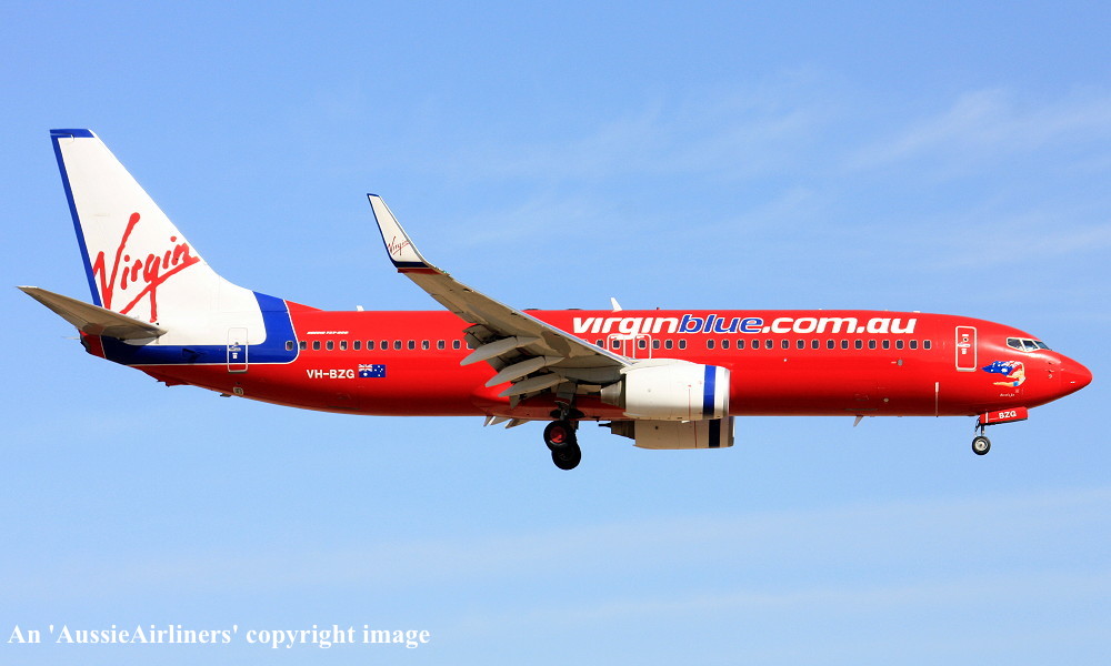VH-BZG. Virgin Blue - 'Brett's Jet' in the standard livery at Adelaide West Beach Airport, August 18, 2010. (R. Brown Copyright Image 4622-658.) |