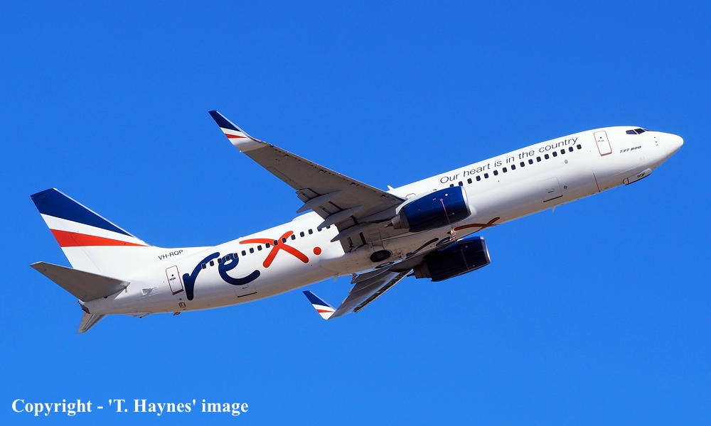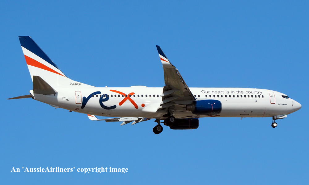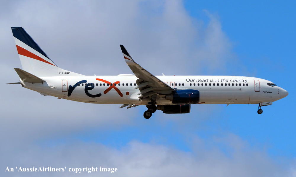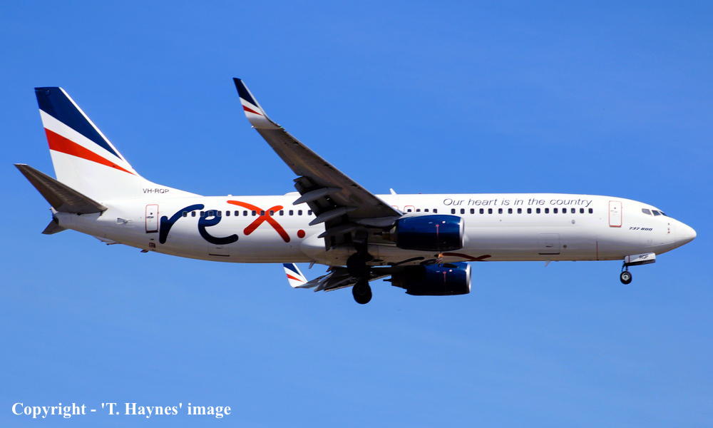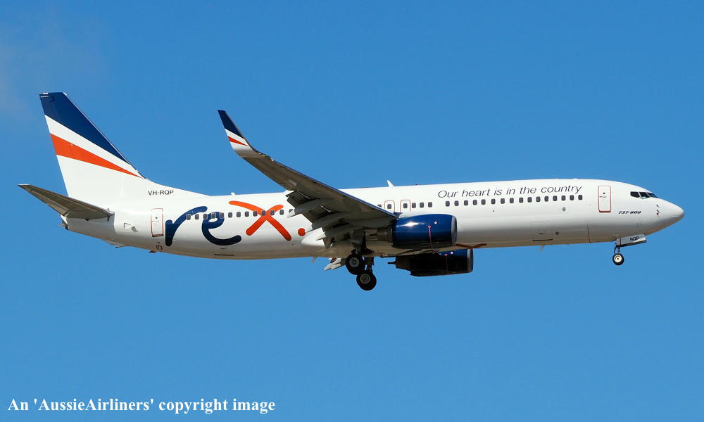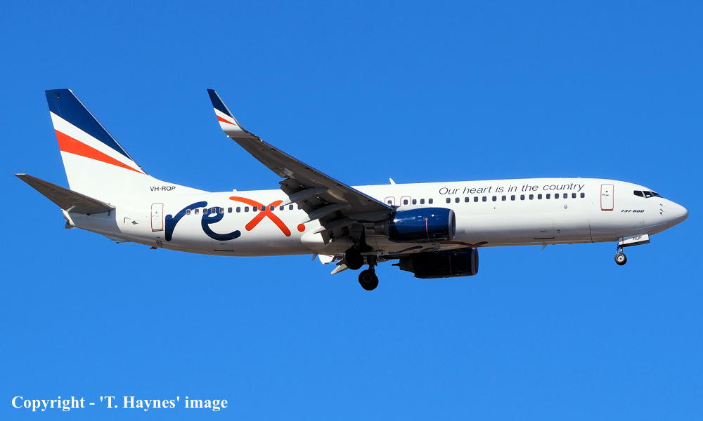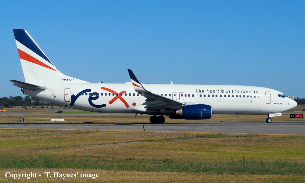 VH-RQP. REX - in the standard livery with additional 'Our heart is in the country' titles at Sydney Kingsford Smith Airport, September 16, 2022. (T. Haynes Copyright Image 4623-079.) |