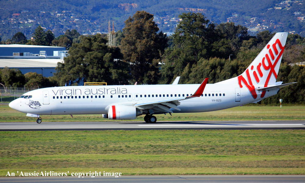 VH-BZG. Virgin Australia - 'Brett's Jet' in the standard livery at Adelaide West Beach Airport, June 21, 2015. (T. Haynes Copyright Image 4622-926.) |
