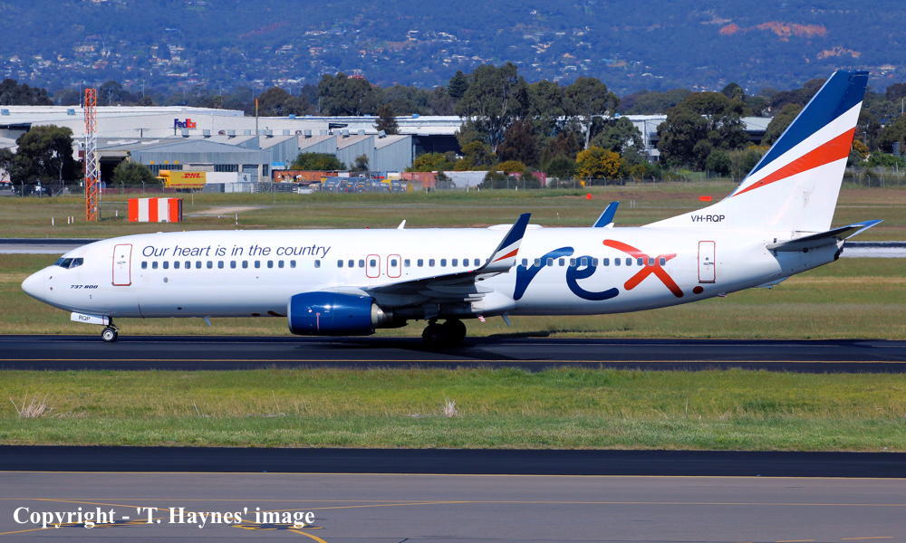 VH-RQP. REX - in the standard livery with additional 'Our heart is in the country' titles at Adelaide West Beach Airport, April 04, 2021. (T. Haynes Copyright Image 4622-889.) |
