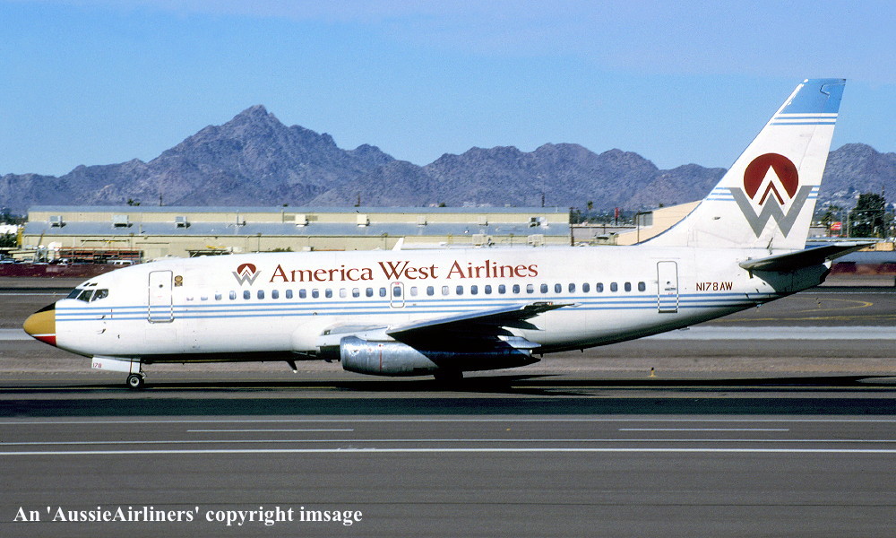N178AW. America West - in the standard livery at Tucson Airport, December 1997. (R. N. Smith Collection Copyright Image 4620-256.) |