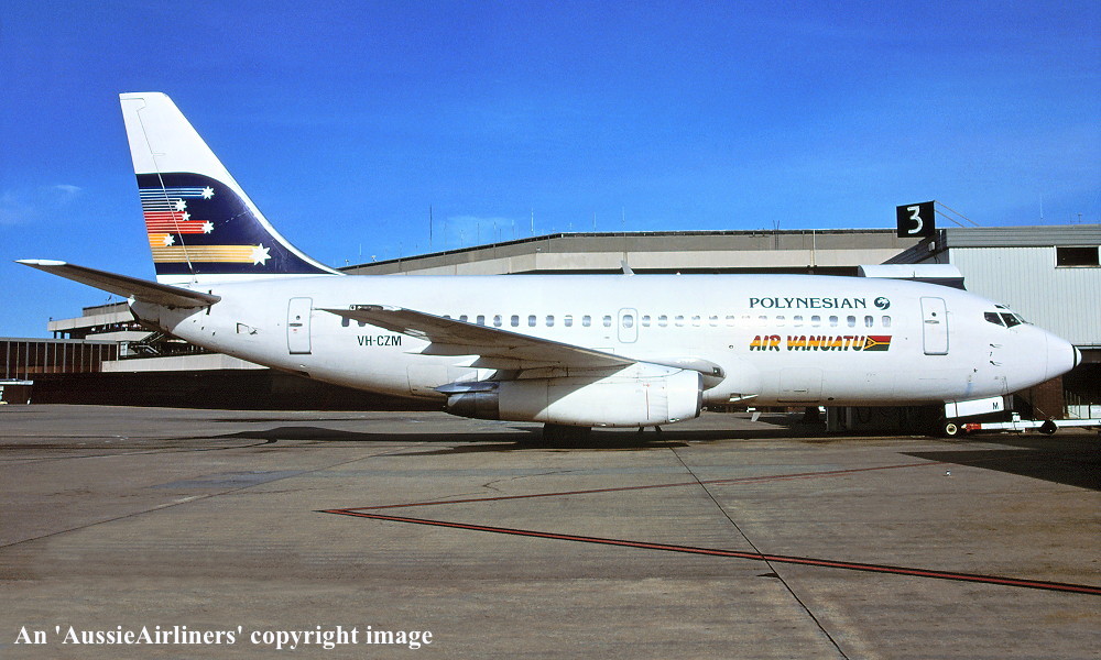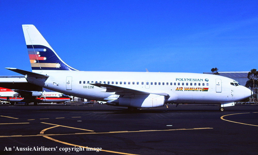 VH-CZM. Polynesian Air Vanuatu - in the Ansett 'Southern Cross' livery at Sydney Kingsford Smith Airport, November 02, 1985. (R. N. Smith Copyright Image 4620-594.) |