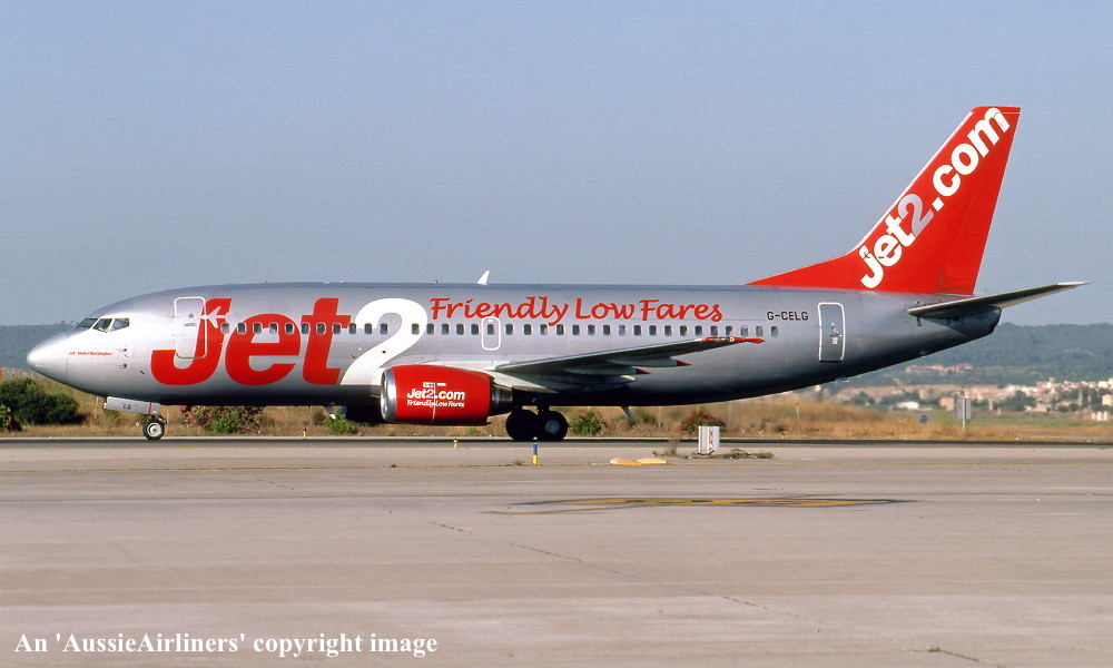 G-CELG. Jet 2 - 'Jet 2 London' in the revised livery with additional 'Friendly Low Fares' titles at Leeds Airport, June 2009. (R. N. Smith Collection Copyright Image 4620-458.) |