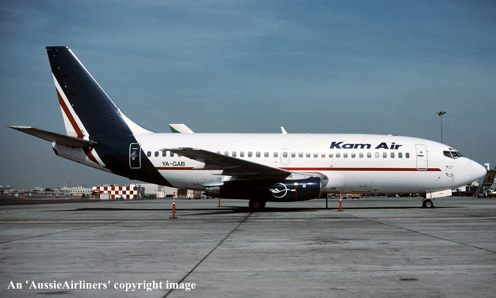 This aircraft was ordered new by Ansett Airlines - ? Rolled off the Boeing production line at Seattle - September 21, 1981 First flown as VH-CZR - October 08, 1981 Entered onto the Australian Aircraft Register as VH-CZR - October 19, 1981 Registered to Ansett Transport Industries (Operations) Pty Ltd, Melbourne Accepted by Ansett at Seattle (Boeing Field) - October 20, 1981 Departed Seattle (Boeing Field) on the delivery flight to Australia - October 22, 1981 It arrived at Melbourne (Tullamarine) on completion of the delivery flight - October 25, 1981 Delivery route: Seattle - San Francisco - Hilo - Pago Pago - Nadi - Melbourne Flight crew: Captains M. Wheaton, C. Bird; Engineer H. Short Operated its first revenue service Melbourne - Canberra (Captain G. Henderson) as AN384 - November 06, 1981 Operated the final 737-277 service for Air Vanuatu - January 31, 1987 Operated its final revenue service Sydney - Melbourne (Tullamarine - Capt A. C. Reid) as AN37 - February 01, 1987 The aircraft had flown 12,300 hours This was the last 737-277 to be operated by Ansett Australia Departed Melbourne (Tullamnarine) on the ferry flight to the United States as AN556 - February 06, 1987 Ferry route: Melbourne - Nadi - Apia - Hilo - Seattle (Paine Field) Flight crew: Captains D. James, P. Yelland, N. McFarland; Engineer C. Amse Sold to Wilmington Trust Co - February 1987 Cancelled from the Australian Aircraft Register - March 10, 1987 Entered onto the United States Aircraft Register as N183AW - March 12, 1987 Registered to Wilmington Trust Co, Wilmington, DE Leased to America West Airlines as the registered operator Converted to America West configuration by Elsinore Aviation Services, Waco, Texas Operated its final America West revenue service Los Angeles - Phoenix as HP707 - October 23, 2003 Ferried Phoenix - Mojave for storage - October 31, 2003 Sold to Alameda Corp c/- Jetran International Ltd, San Antonio, Texas Registered to Jetran International - November 15, 2003 Ferried Mojave - Tucson for overhaul by Hamilton Aerospace - June 15, 2004 The intended lease to Aloha Airlines, Hawaii did not take place Sold to Aerovista Airlines, Dubai, UAE - January 20, 2005 It was observed at Sharjah as 'N183AW' - February 2005 Cancelled from the United States Aircraft Register - February 01, 2005 Entered onto the United Arab Emirates Aircraft Register as A6-AVA - February 01, 2005 Advertised for immediate lease by Aerovista Airlines - April 07, 2005 The aircraft was configured with 110 economy seats and had flown 64,648 hours - April 07, 2005 Sold to Kam Air, Kabul, Afghanistan - November 05, 2005 Entered onto the Afghanistan Aircraft Register as YA-GAB - November 05, 2005 It was observed at Delhi as YA-GAB in the Kam Air livery - April 20, 2007 It was observed flying with Kam Air - November 2008 Current status ? |