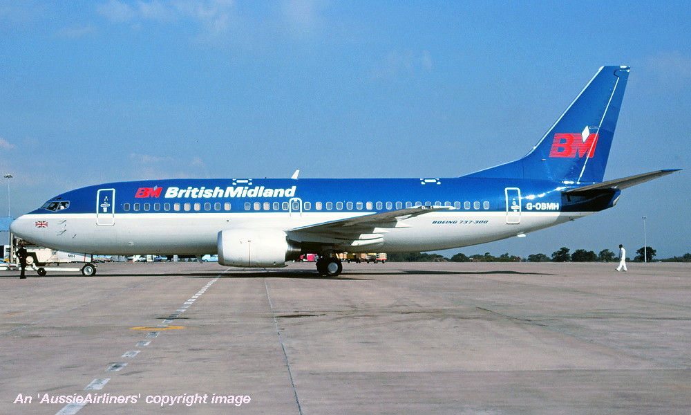 G-OBMH. British Midland - in the standard livery at Manchester Airport, June 1990. (G. Ditchfield Copyright Image 4620-879.) |
