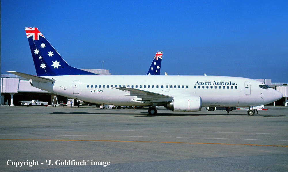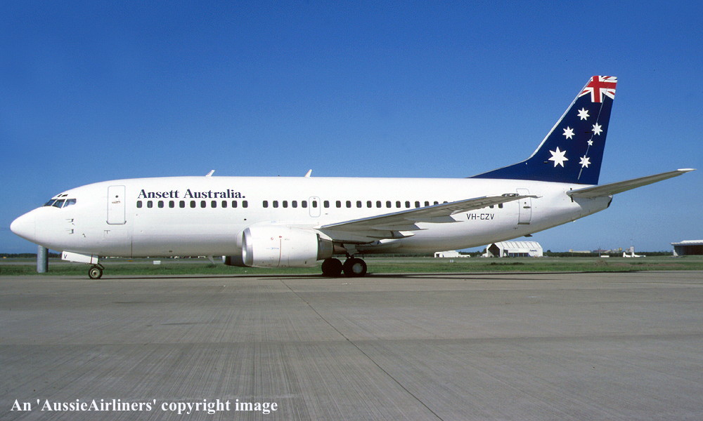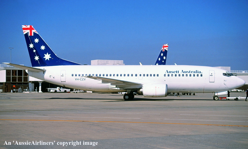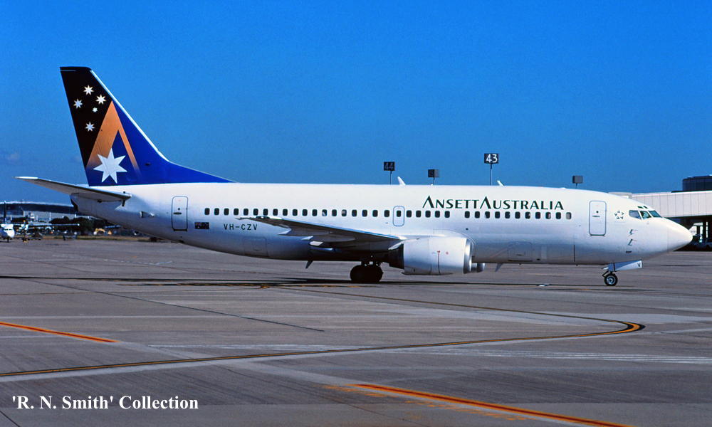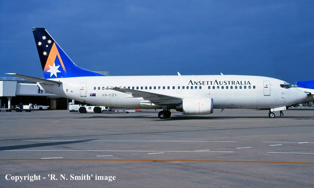 VH-CZV. Ansett Australia - in the 'Starmark' livery at Brisbane Airport, July 2001. (R. N. Smith Collection Copyright Image 4623-411.) |