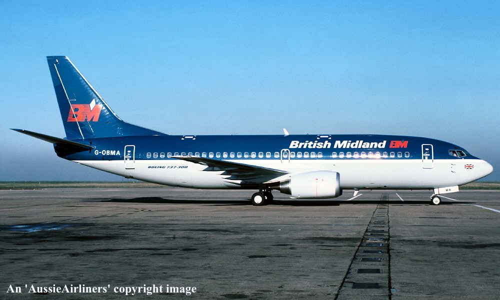 G-OBMA. British Midland - in the standard livery at East Midlands Airport, December 1987. (R. N. Smith Collection Copyright Image 4620-335.) |