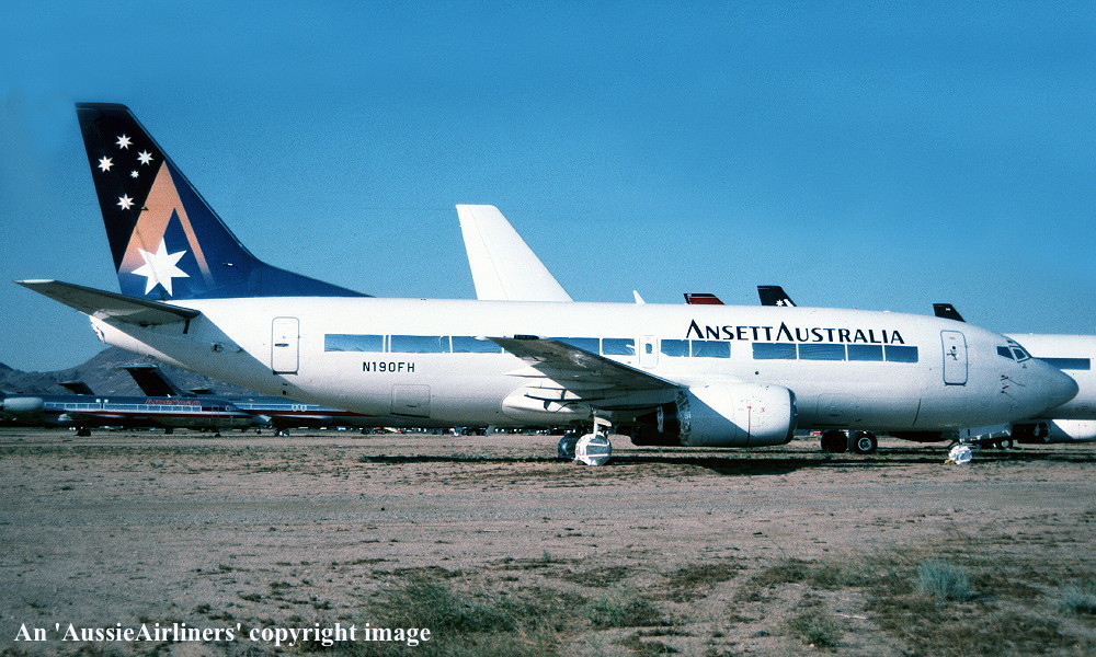 N190FH. Ansett Australia - in the 'Starmark' livery at Mojave Airport, July 2003. (R. N. Smith Collection Copyright Image 4620-343.) |