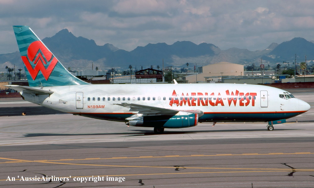 N189AW. America West - in the revised livery at Phoenix Airport, January 2004. (R. N. Smith Collection Copyright Image 4620-535.) |