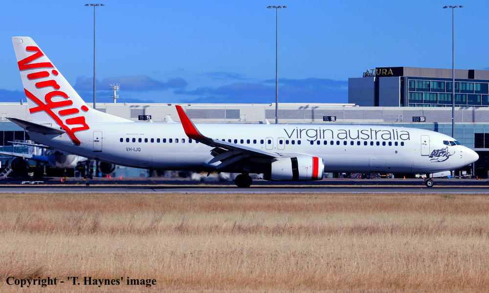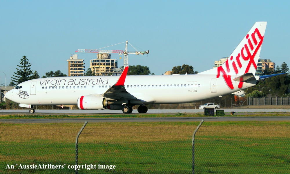 VH-IJQ. Virgin Australia - in the standard livery at Brisbane Airport, October 28, 2021. (L. Fox Copyright Image 4622-918.) |