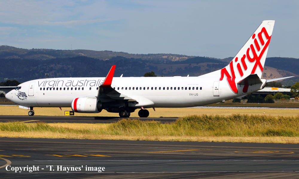 VH-IJQ. Virgin Australia - in the standard livery at Adelaide West Beach Airport, February 26, 2025. (T. Haynes Copyright Image 4623-674.) |