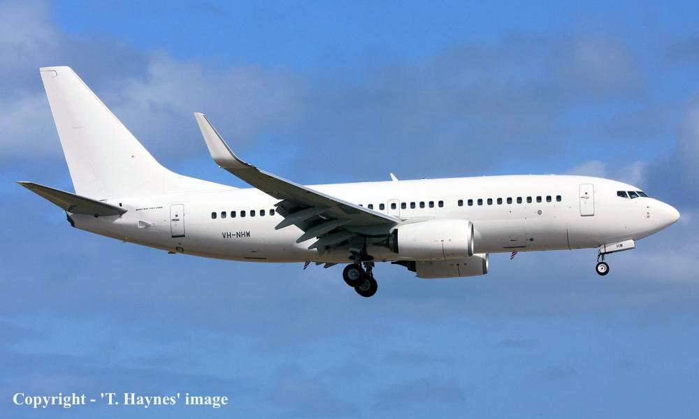 VH-NHW. Boeing 737-7K2. c/n 39257-3779. Was also registered as: PH-BGU; 2-BBMH. |