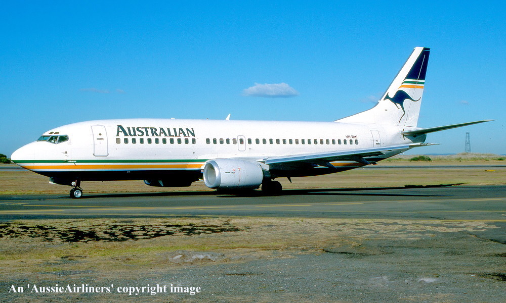 VH-TAG. Boeing 737-376. c/n 23478-1251. Was also registered as: ZK-JNG; VH-XMB. |