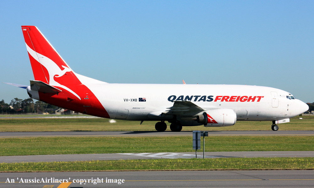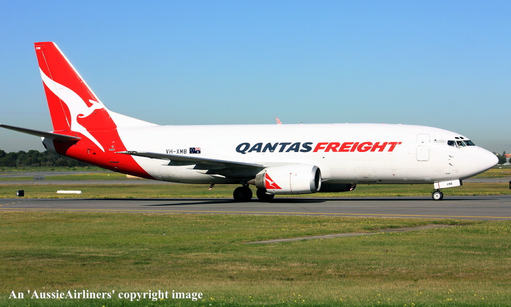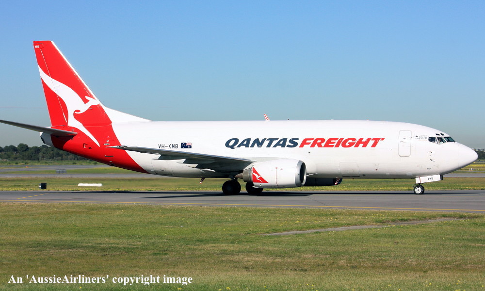 VH-XMB. Qantas Freight - in the standard livery at Melbourne Tullamarine Airport, July 09, 2014. (G. Canciani Copyright Image 4621-017.) |