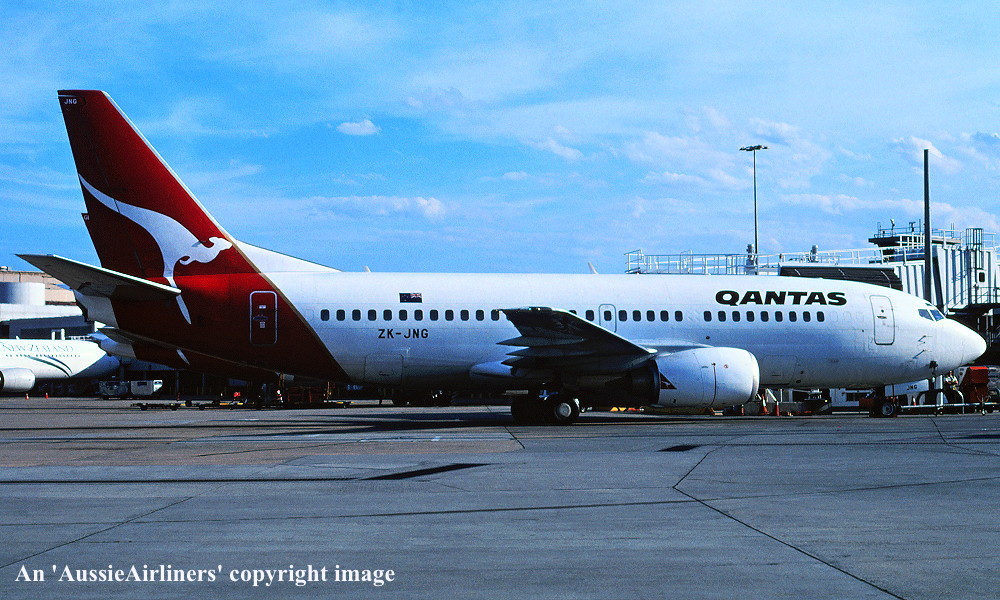 ZK-JNG. Qantas - in the standard livery at Melbourne Tullamarine Airport, December 2003. (R. N. Smith Collection Copyright Image 4622-304.) |