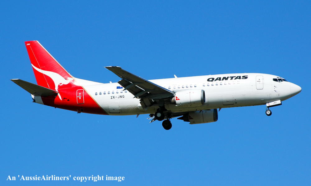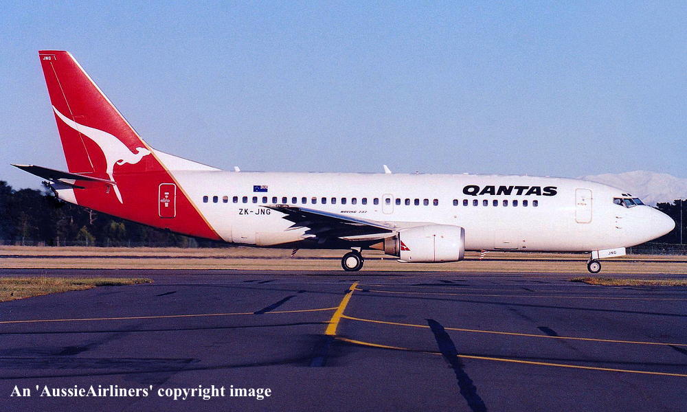ZK-JNG. Qantas - in the standard livery at Melbourne Tullamarine Airport, December 29, 2004. (G. Canciani Copyright Image 4623-005.) |