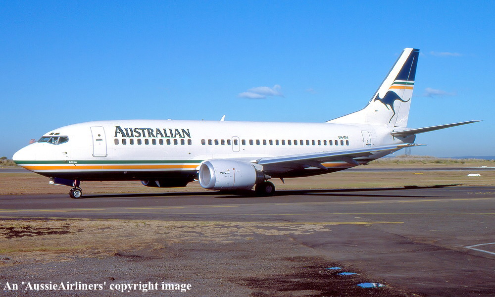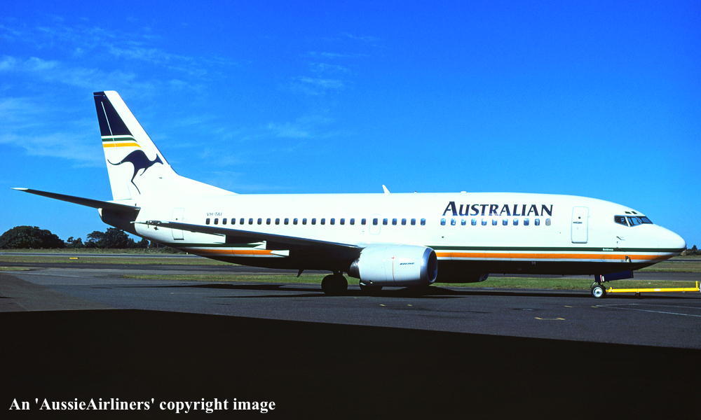 VH-TAI. Boeing 737-376. c/n 23483-1264. Was also registered as: ZS-OKG. |