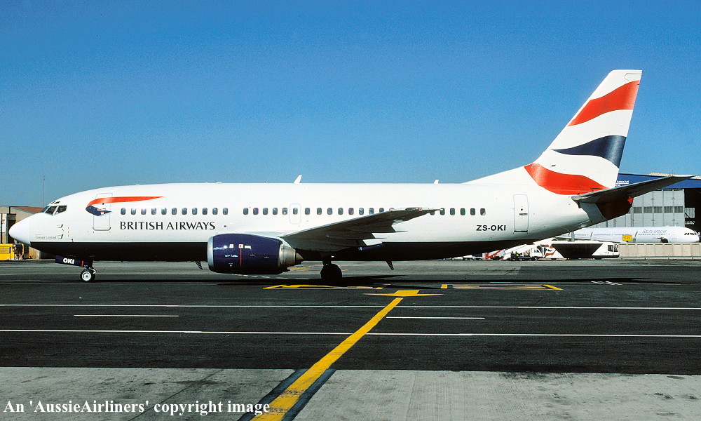 ZS-OKI. British Airways - in the standard livery at Johannesburg Airport, October 2006. (R. N. Smith Collection Copyright Image 4620-348.) |