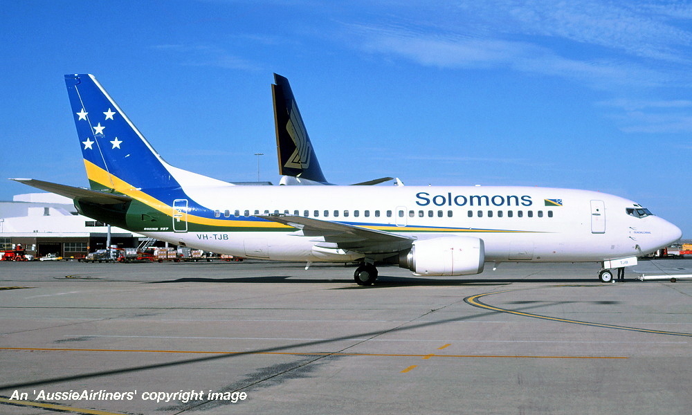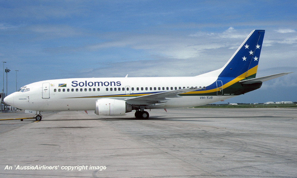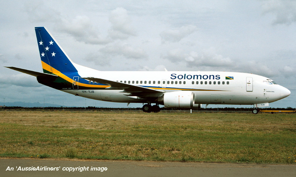 VH-TJB. Solomons - 'Guadelcanal' in the standard livery at Melbourne Tullamarine Airport, December 1994. (R. N. Smith Collection Copyright Image 4620-625.) |