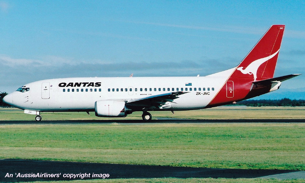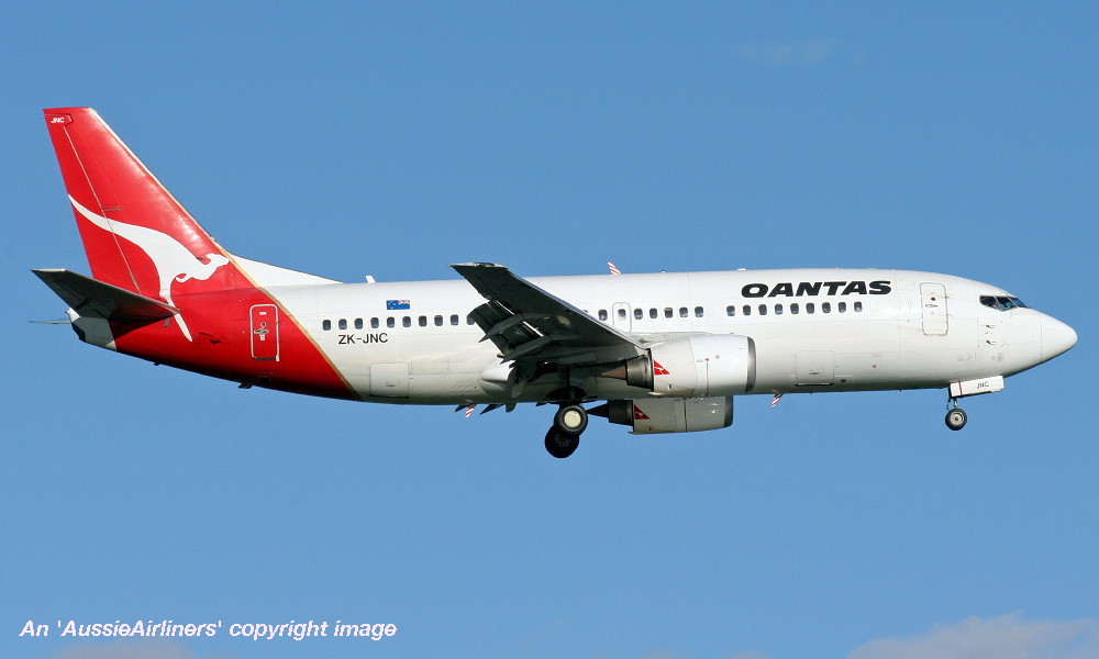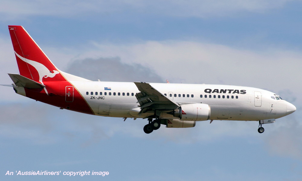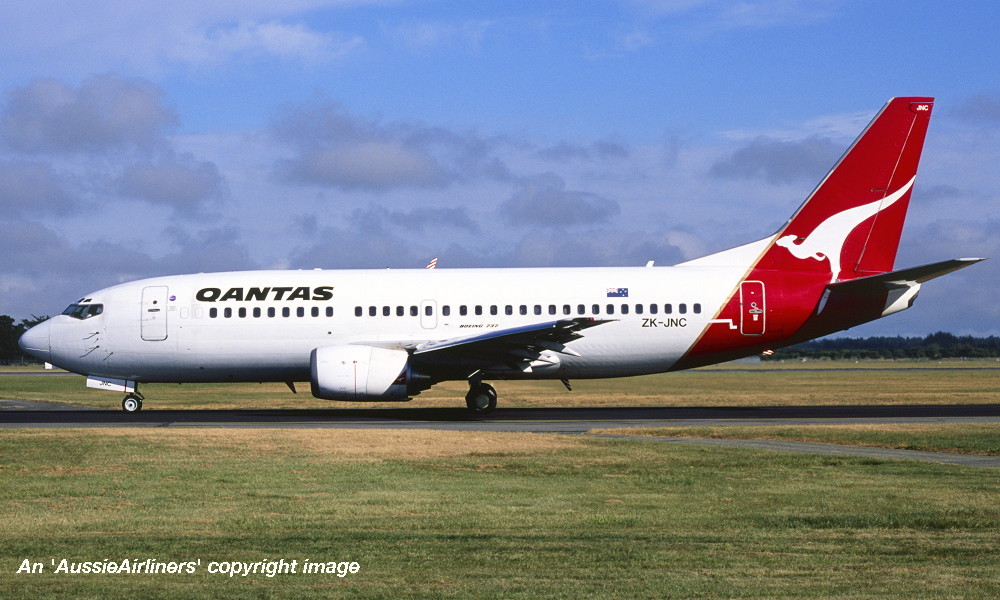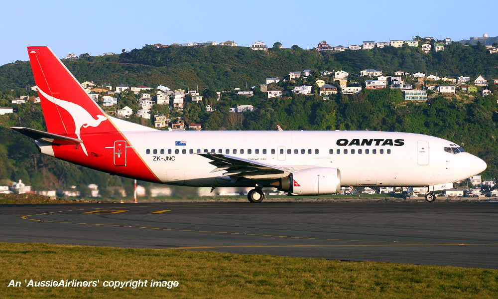 ZK-JNC. Qantas - in the standard livery at Wellington Airport, October 2007. (G. Reid Copyright Image 4621-124.) |