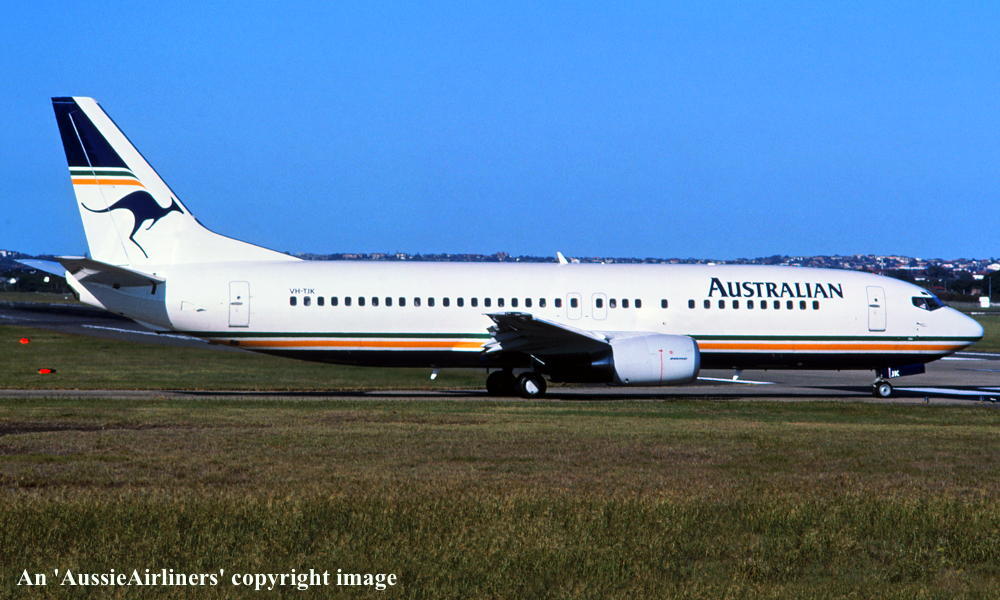 This aircraft was the seventh of nine aircraft ordered new by Australian Airlines - July 28, 1988 Rolled off the Boeing production line at Seattle - January 18, 1991 Powered by CFM International CFM-56-3C1 engines First flown as VH-TJK - February 05, 1991 Technical acceptance by Australian Airlines - February 20, 1991 Entered onto the Australian Aircraft Register as VH-TJK - February 28, 1991 Registered to Australian Airlines Ltd, Melbourne Accepted by Australian Airlines at Seattle - February 28, 1991 Departed Seattle (Boeing Field) on the delivery flight to Australia as TN1396 - March 01, 1991 Arrived Melbourne (Tullamarine) on completion of the delivery flight - March 03, 1991 Delivery route: Seattle (Boeing Field) - Honolulu - Nadi - Melbourne The aircraft was named 'Ibis' Operated its first revenue service - March 1991 Australian Airlines was sold to Qantas Airways Ltd - September 14, 1992 Australian Airlines initially continued to operate as a separate identity with some flights flown between the two carriers jointly Australian Airlines was officially merged with Qantas Airways - October 31, 1993 Ownership was transferred to Qantas Airways Ltd - December 08, 1993 The planned transfer of this aircraft to Qantas Jetconnect, New Zealand did not eventuate - 2006 Registered to AAL Aviation Ltd - February 02, 2007 Leased to Qantas Airways Ltd as the registered operator Operated its final revenue service Sydney (Kingsford Smith) - Melbourne (Tullamarine) as QF463 - April 09, 2013 Withdrawn from service and prepared for return to the lessor at the end of the lease Qantas titles and logo was removed at Melbourne (Tullamarine) Airport Departed Melbourne (Tullamarine) on the ferry flight to the United States as QF6027 - April 22, 2013 Arrived Victorville for storage - April 24, 2013 Ferry route: Melbourne (Tullamarine) - Sydney - Apia - Honolulu - Victorville Cancelled from the Australian Aircraft Register - ? Stored at Victorville and offered for immediate sale |