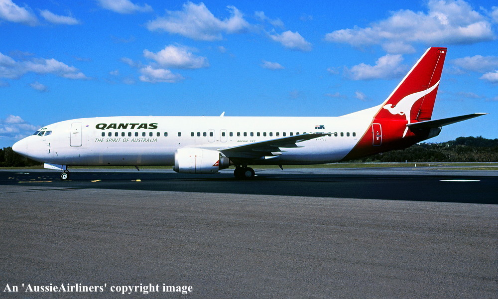 VH-TJL. Qantas The Spirit of Australia - 'Swift' in the standard livery at Coolangatta Airport, September 1999. (R. N. Smith Collection Copyright Image 4621-509.) |