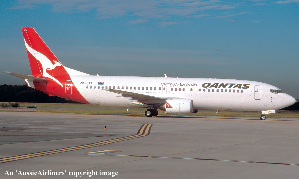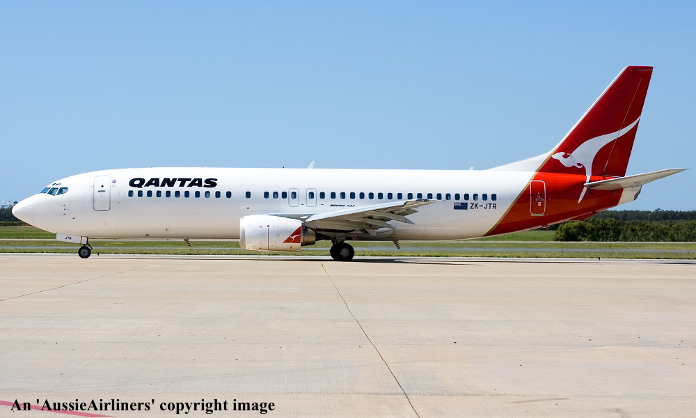 ZK-JTR. Qantas - in the revised livery at Brisbane Airport, November 2008. (R. N. Smith Collection Copyright Image 4620-441.) |
