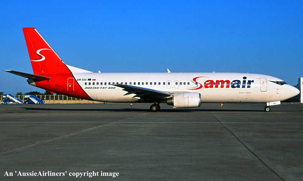 This aircraft was ordered new by Australian Airlines - ? Rolled off the Boeing production line at Seattle - March 20, 1992 Powered by CFM International CFM-56-3C1 engines Entered onto the Australian Aircraft Register as VH-TJN - March 25, 1992 Registered to Australian Airlines Ltd, Melbourne First flown as VH-TJN - April 03, 1992 Accepted by Australian Airlines at Seattle (Boeing Field) - April 22, 1992 Departed Seattle (Boeing Field) on the delivery flight to Australia as TN1396 - May 04, 1992 It arrived at Melbourne (Tullamarine) on completion of the delivery flight - May 06, 1992 Delivery route: Seattle (Boeing Field) - Honolulu - Melbourne The aircraft was named 'Egret' Operated its first revenue service Melbourne (Tullamarine) - Perth as TN014 - May 20, 1992 Australian Airlines was sold to Qantas Airways Ltd - September 14, 1992 Australian Airlines initially continued to operate as a separate identity with some flights flown jointly between the two carriers Australian Airlines was officially merged with Qantas Airways - October 31, 1993 Ownership was transferred to Qantas Airways Ltd - December 08, 1993 Operated its last Qantas revenue service Adelaide (West Beach) - Melbourne (Tullamarine) as QF694 - April 04, 2007 The aircraft was then prepared for transfer to Qantas Jetconnet, New Zealand Cancelled from the Australian Aircraft Register - May 31, 2007 Entered onto the New Zealand Aircraft Register as ZK-JTR - May 31, 2007 Registered to Jetconnect Ltd, New Zealand Ferried Melbourne (Tullamarine ) - Auckland as QF6173 - June 01, 2007 Operated its first Jetconnect revenue service Auckland - Wellington as QF4003 - June 02, 2007 It was observed at Auckland in the Qantas 'new roo' livery - October 26, 2008 It was the first aircraft in the Jetconnect fleet to be repainted into the new Qantas livery Operated its final New Zealand domestic service Queenstown - Christchurch as QF2772 - June 09, 2009 Ferried Christchurch - Auckland as QF6171 - June 09, 2009 The aircraft was then operated by Jetconnect on its Trans-Tasman services only Operated its final revenue service Brisbane - Auckland as QF115 - March 24, 2011 All Qantas markings were removed at Auckland Test flown at Auckland in all-white livery as QF6173 - June 17, 2011 Departed Auckland on the ferry flight to Indonesia as QF6029 - June 20, 2011 It arrived at Jakarta on completion of the ferry flight - June 21, 2011 Ferry route: Auckland - Brisbane - Darwin - Jakarta Cancelled from the New Zealand Aircraft Register - July 05, 2011 Sold to Savegh Group Aviation - July 11, 2011 Entered onto the United States Aircraft Register as N249SY - July 12, 2011 Registered to Bank of Utah Trustees, Salt Lake City, Utah Departed Jakarta on the ferry flight to Budapest - August 02, 2011 It arrived at Budapest on completion of the ferry flight - August 03, 2011 Ferry route: Jakarta (Sukarno Hatta) - Abu Dhabi - Larnaca - Budapest It was observed at Budapest in the standard Samair livery - September 06, 2011 Entered onto the Slovakian Aircraft Register as OM-SAA - September 06, 2011 Cancelled from the United States Aircraft Register - September 09, 2011 Ferried Budapest - Belgrade - Bratislava on delivery to Samair as CCS001 - October 04, 2011 The aircraft carries small 'Sayegh Group' titles on the fuselage Current status - ? |