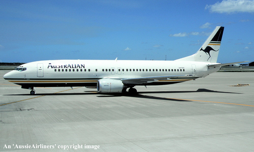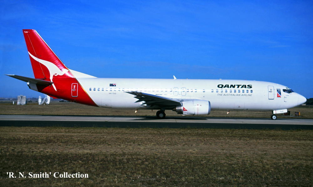 VH-TJO. Boeing 737-476. c/n 24440-2324. Was also registered as: N116BT; EI-STB; OE-IAJ. |