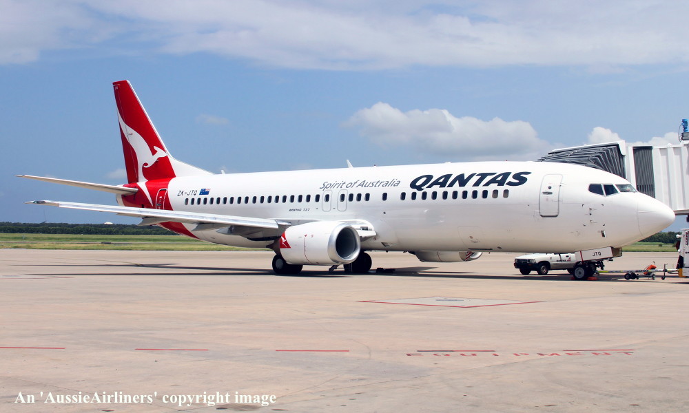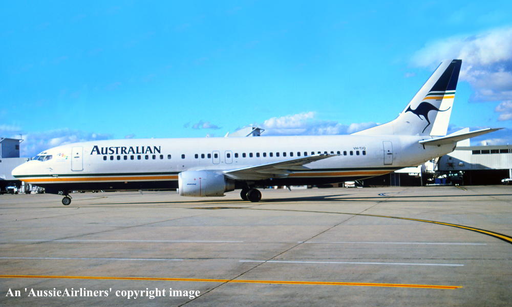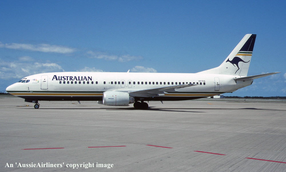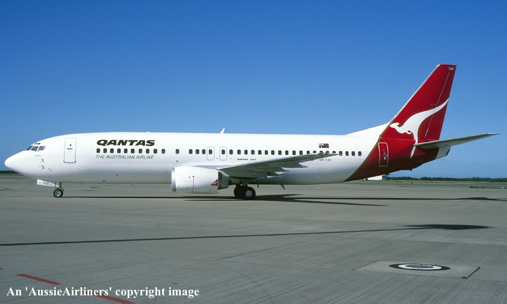 VH-TJQ. Boeing 737-476. c/n 24442-2372. Was also registered as: ZK-JTQ. |