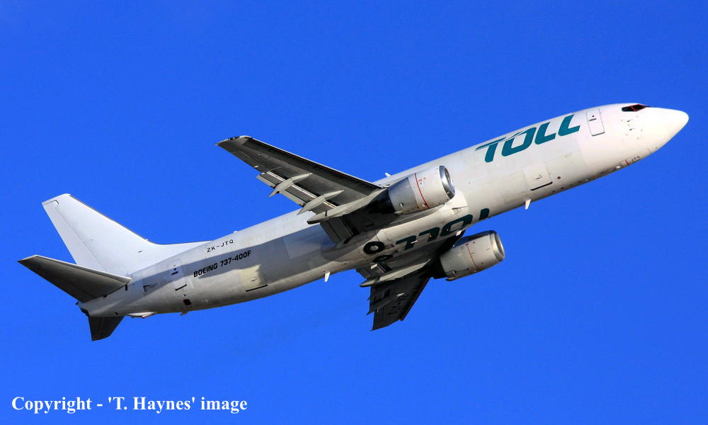 This aircraft was ordered new by Australian Airlines - ? Rolled off the Boeing production line at Seattle (Renton) - September 01, 1992 Powered by CFM International CFM-56-3C1 engines Entered onto the Australian Aircraft Register as VH-TJQ - September 07, 1992 Registered to Australian Airlines Ltd, Melbourne Australian Airlines was sold to Qantas Airways Ltd - September 14, 1992 First flown as VH-TJQ - September 21, 1992 Accepted by Australian Airlines at Seattle (Boeing Field) - September 29, 1992 Departed Seattle (Boeing Field) on the delivery flight to Australia as AUS1397 - October 08, 1992 It arrived at Melbourne (Tullamarine) on completion of the delivery flight from the United States - October 10, 1992 Delivery route: Seattle - Port Angeles - Honolulu - Apia - Nadi - Melbourne Aircraft was named 'Bellbird' Operated its first revenue service - October ?, 1992 Australian Airlines was officially merged with Qantas Airways Ltd - October 31, 1993 Ownership was transferred to Qantas Airways Ltd - December 08, 1993 Operated its final revenue service Adelaide (West Beach) - Melbourne (Tullamarine) as QF694 - May 02, 2006 Withdrawn from service and prepared for transfer to Qantas Jetconnect, New Zealand Cancelled from the Australian Aircraft Register - June 21, 2006 Entered onto the New Zealand Aircraft Register as ZK-JTQ - June 21, 2006 Registered to Jetconnect Ltd, (NZ) Ltd Ferried Melbourne (Tullamarine) - Christchurch on delivery to Jetconnect as QF6011 - June 22, 2006 Ferried Christchurch - Auckland as QF6172 - June 23, 2006 Operated its first Qantas Jetconnect revenue service Auckland - Wellington as QF4043 - June 23, 2006 Operated its first trans-Tasman service Wellington - Melbourne (Tullamarine) as QF38 - July 05, 2006 It was observed at Christchurch in the new 'Qantas' livery - May 31, 2009 Operated its final New Zealand domestic service Auckland - Wellington as QF2719 - June 09, 2009 Operated its final revenue service Brisbane - Auckland as QF125 - November 15, 2011 The aircraft was stored at Auckland in the basic 'Qantas' livery as ZK-JTQ Registered to Airwork Flight Operations Ltd, Auckland, New Zealand - December 20, 2011 It was observed at Auckland with 'Alliance' titles and a blue tail - February 06, 2012 Ferried Auckland - Brisbane as AWK001 - February 10, 2012 Ferried Brisbane - Adelaide (West Beach) - Kalgoorlie - Perth as AWK001 - February 13, 2012 Wet-leased to Alliance to operate fly in / fly out operations in Western Australia Has inscription behind forward cabin door 'Operated by Airwork Flight Operations Ltd' Operated its first Alliance service Perth - Karratha as QQ737 - February 14, 2012 Operated its last Alliance service Karratha - Perth as QQ738 - March 14, 2013 Ferried Perth - Brisbane as AWK737 - March 16, 2013 Wet-leased to Solomon Airways - March 17 - 25, 2013 Ferried Brisbane - Perth on return to Alliance as AWK737 - April 08, 2013 Returned to service Perth - Karratha as QQ731 - April 09, 2013 Operated its final Alliance revenue service Karratha - Perth as UTY738 - December 11, 2013 Ferried Perth - Adelaide (West Beach) on return to Airwork as AWK11 - December 12, 2013 It was observed at Adelaide (West Beach) in the basic Allience livery - December 24, 2013 Ferried Adelaide (West Beach) - Brisbane - December 24, 2013 It was observed operating service for Our Airlines Brisbane - Nauru as RON4 - December 24, 2013 Departed Brisbane on the ferry flight to the United States - March 18, 2014 Ferry route: Brisbane - Apia - Kona - ? - Jacksonville The aircraft was overhaulled and converted to freighter configuration in Jacksonville Departed Jacksonville on the ferry flight to New Zealand - August 15, 2014 It arrived at Auckland on completion of the ferry flight from the United States - August 18, 2014 Ferry route: Jacksonville - Long Beach - Kona - Apia - Auckland Ferried Auckland - Brisbane in the standard 'Toll Aviation' livery - August 25, 2014 Operated its first freighter service Brisbane - Sydney (Kingsford Smith) as TFR21 - August 27, 2014 Operated by Airwork (N.Z.) for Toll Air Current with Toll Air |