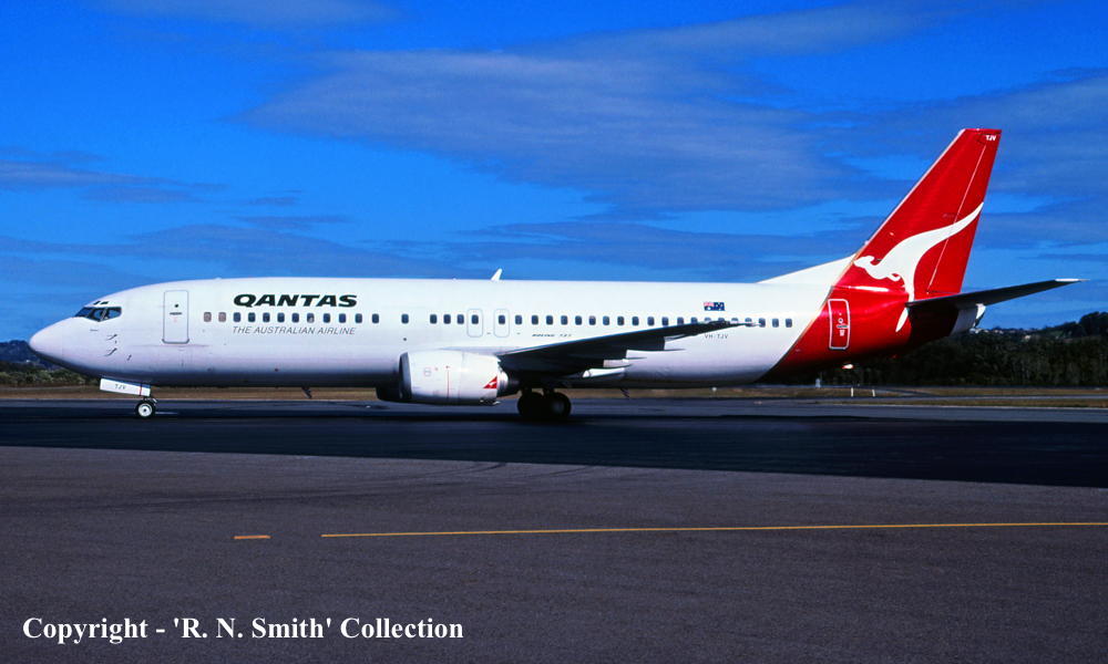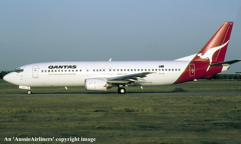 VH-TJV. Boeing 737-4Q8. c/n 25163-2264. Was also registered as: H4-SOL; TC-SKE; N350AT; 9G-AGL. |