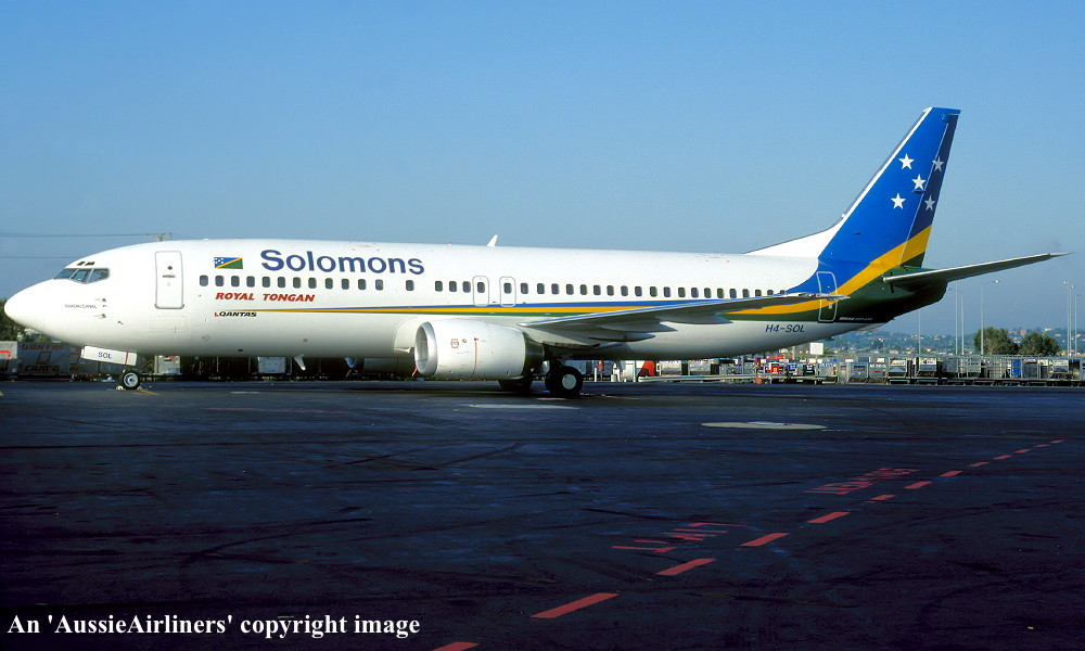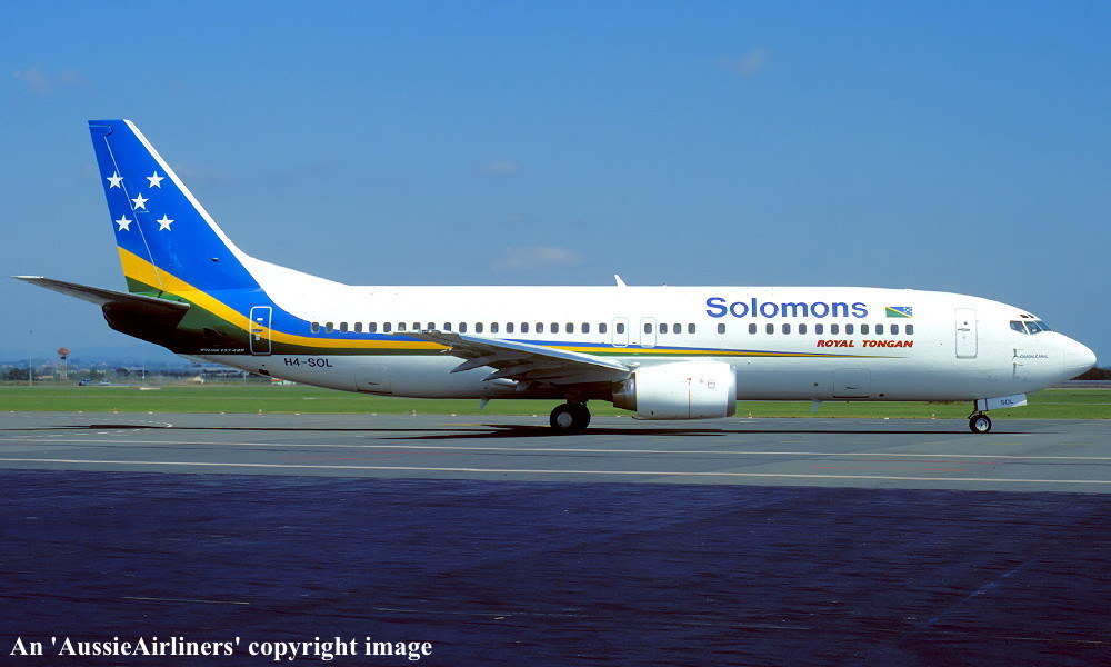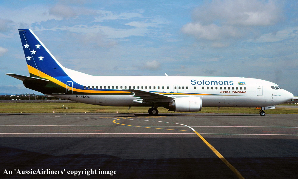 H4-SOL. Solomons Royal Tongan - 'Guadalcanal' in the original livery at Brisbane Airport, November 1992. (R. N. Smith Collection Copyright Image 4620-426.) |