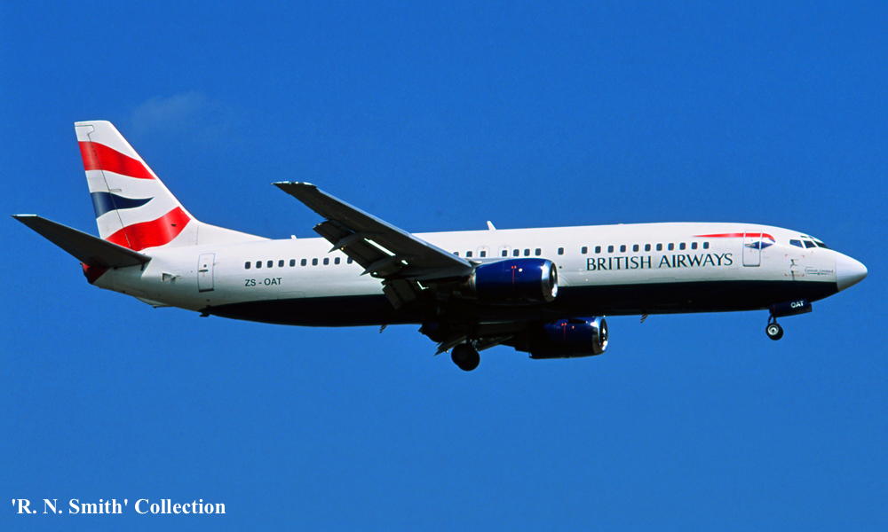 First of three additional aircraft ordered by Qantas Airways to supplement the Australian Boeing 737s This order was confirmed - May 03, 1995 It was designated a '476' to mainain commonality with the acquired Australian fleet of Boeing 737-400s It was allocated the Boeing Block Number 'PW548' Entered onto the Australian Aircraft Register as VH-TJX - November 01, 1995 Registered to Qantas Airways Ltd, Sydney Rolled off the Boeing production line at Seattle (Boeing Field) - February 02, 1996 Powered by CFM International CFM-56-3C1 engines First flown as VH-TJX - February 12, 1996 Accepted by S. Skimin for Qantas Airways at Seattle (Boeing Field) - February 22, 1996 This was the 105th Boeing airliner delivered new to Qantas Airways It was the 1st Boeing 737 to be delivered to Qantas Departed Seattle (Boeing Field) on the delivery flight to Australia in the Qantas livery as QF6902 - February 25, 1996 It arrived at Melbourne (Tullamarine) on completion of the delivery flight - February 27, 1996 Delivery route: Seattle - Honolulu - Apia - Nadi - Melbourne The aircraft was named 'Trust' Operated its first revenue service Melbourne (Tullamarine) - Sydney (Kingsford Smith) as QF454 - March 05, 1996 Registered to Gadwell Leasing Limited - June 23, 1996 Leased to Qantas Airways Limited, Sydney as the registered operator The aircraft encountered a microburst windshear whilst landing at Brisbane Airport - January 18, 2001 To view the ATSB report on this incident please click 'HERE' It was struck by an aircraft tug at Melbourne (Tullamarine) Airport - April 01, 2001 To view the ATSB report on this incident please click 'HERE' This aircraft was the first Boeing 737-400 to acquire the grey 'Spirit of Australia' titles - 2002 It was renamed 'Stawell' - August 16, 2003 Registered to Qantas Airways Limited, Sydney - January 02, 2008 Operated its final revenue service Canberra - Melbourne (Tullamarine) as QF815 - February 23, 2014 Withdrawn from service at Melbourne (Tullamarine) where all titles and logos were removed Departed Melbourne (Tullamarine) on the ferry flight to the United States as QF6025 - March 05, 2014 It arrived at Victorville for storage on completion of the ferry flight - March 07, 2014 Ferry route: Melbourne - Sydney - Apia - Honolulu - Victorville It was stored at Victorville in the basic Qantas livery without titles Sold to Comair Limited, South Africa - 2014 Cancelled from the Australian Aircraft Register - December 05, 2014 Entered onto the South African Aircraft Register as ZS-OAT - December 09, 2014 Registered to Comair Limited, South Africa Current status - ? |
