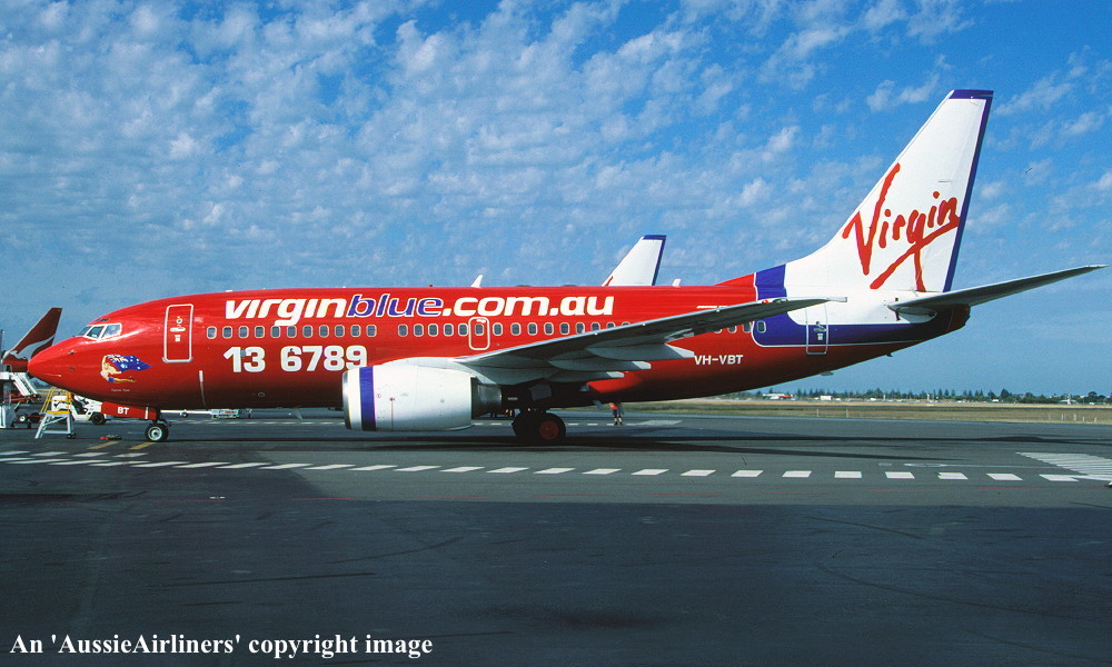 VH-VBT. Virgin Blue - 'Launie Lass' in the standard livery at Coolangatta Airport, January 2004.